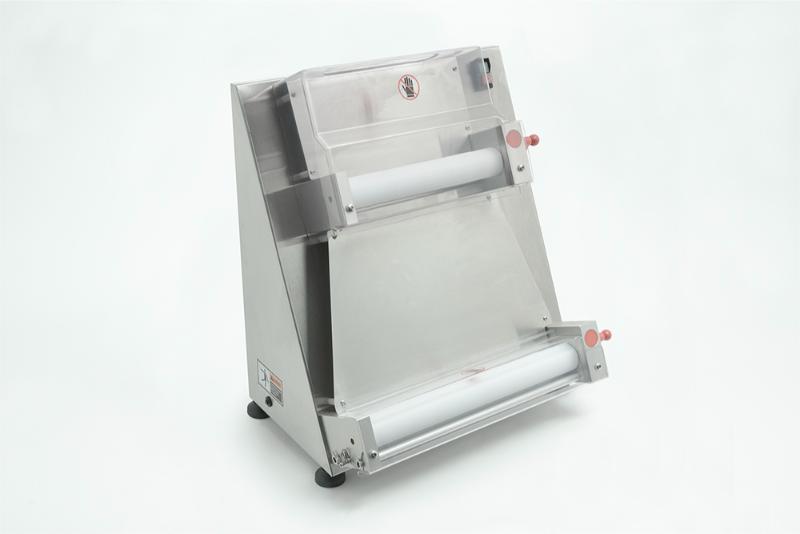 LAMINADORA DE MASAS Y PIZZAS DE 40 CM DE DIÁMETRO MARCA MIGSA. CUERPO EN ACERO INOXIDABLE, CON DOBLE RODILLO DE RESISTENTE NAYLON CON AJUSTADORES INDEPENDIENTES DE GROSOR PARA TRABAJAR DE 100 Y HASTA 400 M. DE DIÁMETRO, PROTECTOR DE ENTRADA DE MASA, CAPACIDAD EN MASA DE 50 HASTA 500 G, VELOCIDAD DE LOS RODILLOS DE 120 R.P.M. PESO BRUTO DE 50 KG, PESO NETO 39 KG, CORRIENTE A 110 V /60 HZ. CERTIFICADO INTERNACIONAL CE, CB. MEDIDAS: 52 X 53 X 65 CM