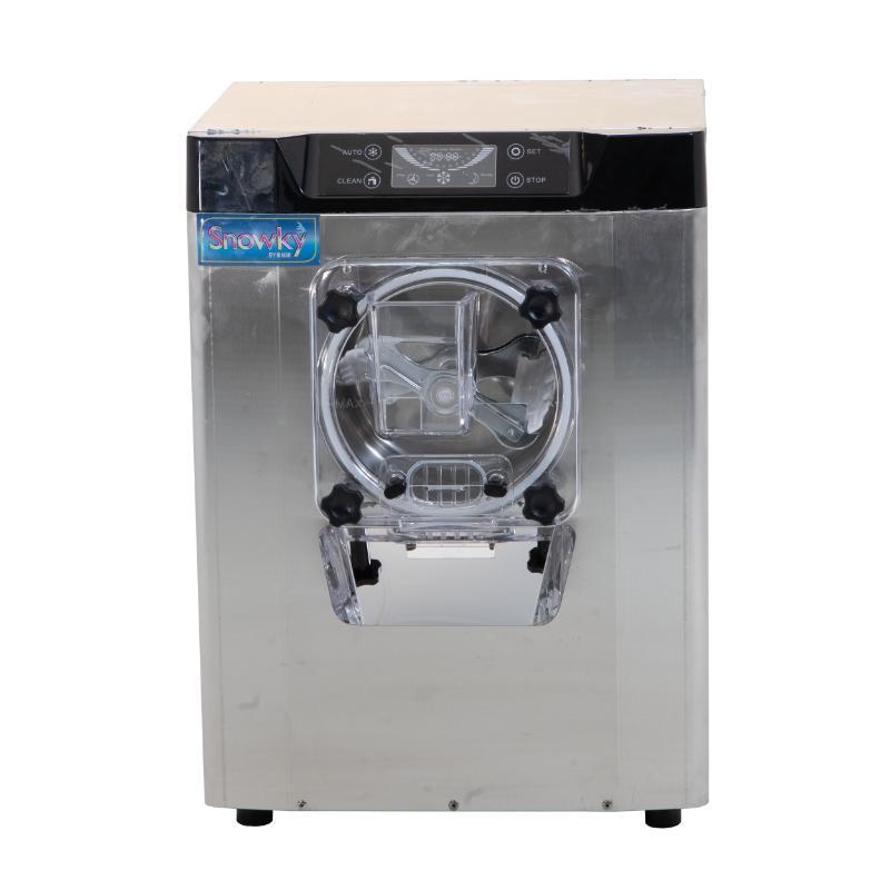 MÁQUINA PRODUCTORA DE HELADO DURO DE MESA MARCA SNOWKY BY MIGSA. GABINETE EN ACERO INOXIDABLE, PANEL DE CONTROL DIGITAL CON LUZ LED, CON BOTONES PARA AJUSTAR EL TIEMPO Y LAVADO. CILINDRO CON CAPACIDAD DE .3 L CON AGITADOR DE ACERO INOXIDABLE. PRODUCCIÓN DE 16- 20 L/H. TAPA FRONTAL DE ACRÍLICO CON CARGADOR Y SALIDA DE PRODUCTO PARA SU FÁCIL VISUALIZACIÓN. COMPRESOR DE 1,400 W A 110 V / 60 HZ. REFRIGERANTE 410A PARA ÁPIDA CONGELACIÓN. PESO BRUTO DE 65 KG. PESO NETO DE 60 KG. MEDIDAS: 53 X 50 X 70 CM